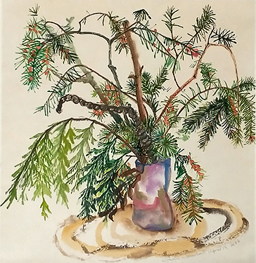 Fir and Cedar on Oval Cream Table, 21 x 48 in. April 13, 2022