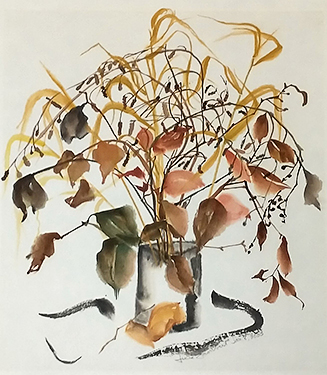 Grass, Birch Twigs and Leaves, 19 x 46 in. Jan. 7, 2023