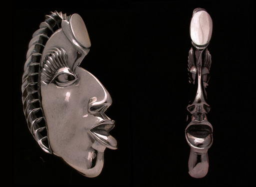 Osiris: cast sterling silver on jade base size 2 x 3 in.